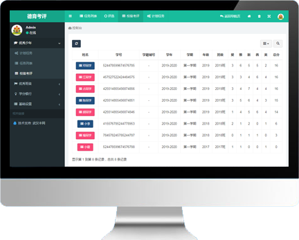 对在校学生、班级进行评比、统计、排名,同时可对全校学生在校表现进行记录。实现考评工作的无纸化,大大提高学校德育考评效率。