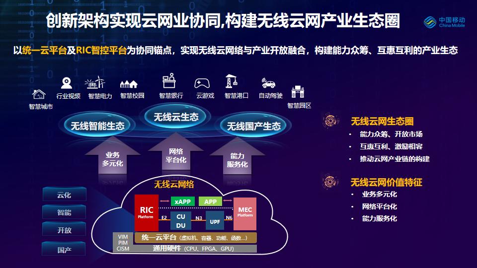 中国移动一直以来致力于推进和引领通信新技术发展,未来将通过构建开放的无线云网生态圈进一步深化DOICT技术融合,提升并开拓5G网络的服务能力,希望与产业界同仁深入合作,持续创新,继往开来。